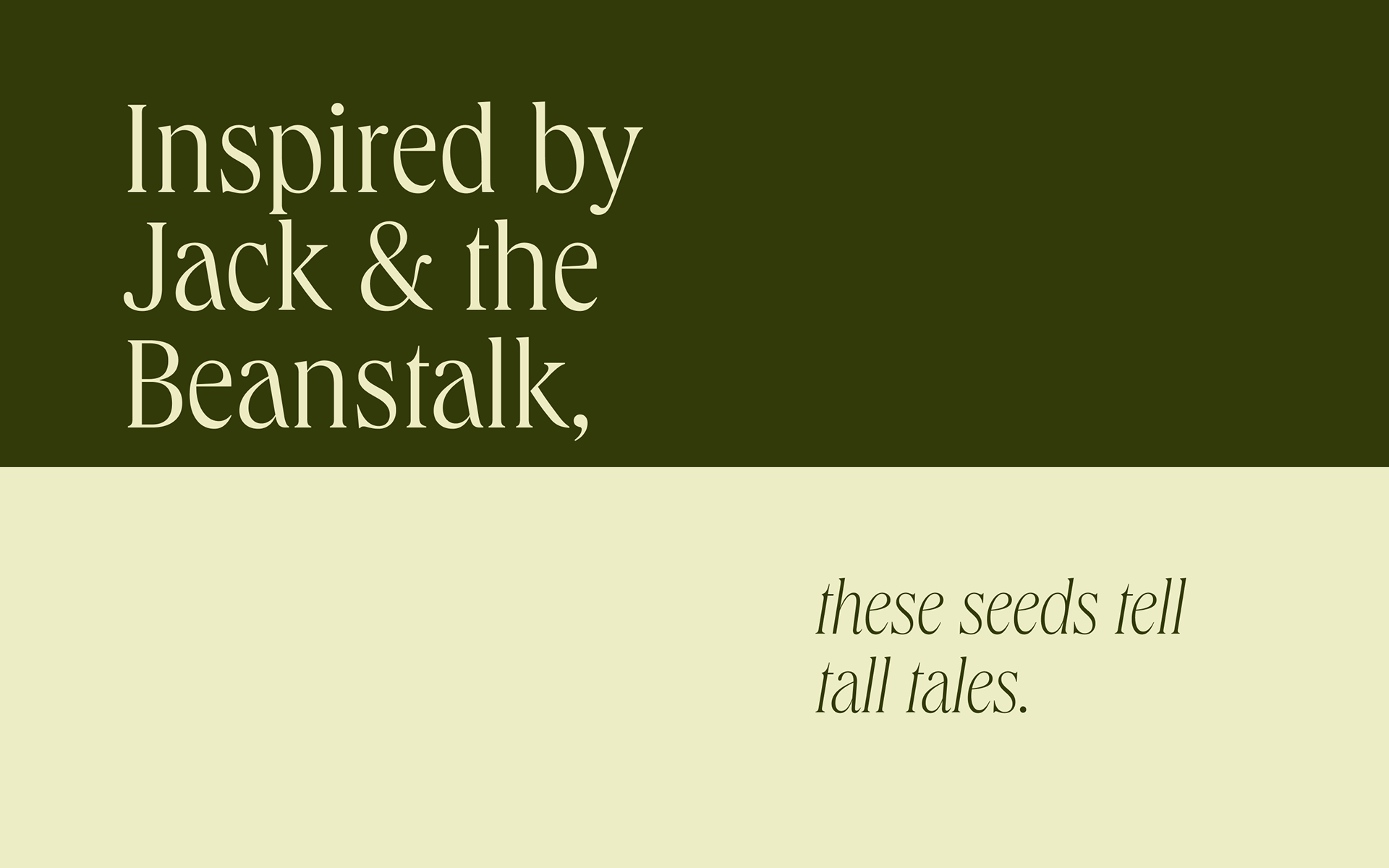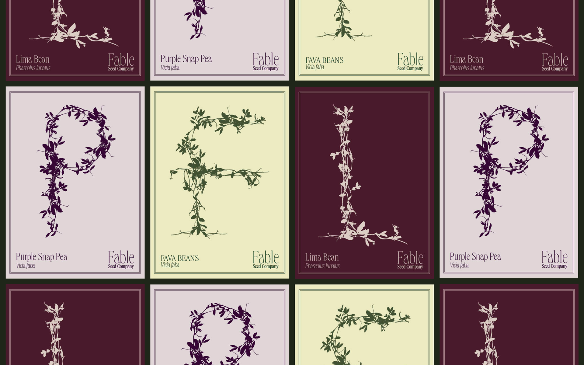 Every seed tells a story. What if that same seed could also grow the words to tell its own story? This plant-derived bespoke typeface, Fabales, does exactly this. Built from pea plants, Fabales celebrates the launch of Fable Seed Company’s Heirloom Bean and Pea line. The typeface even takes its name from the scientific order to which bean and pea plants belong.